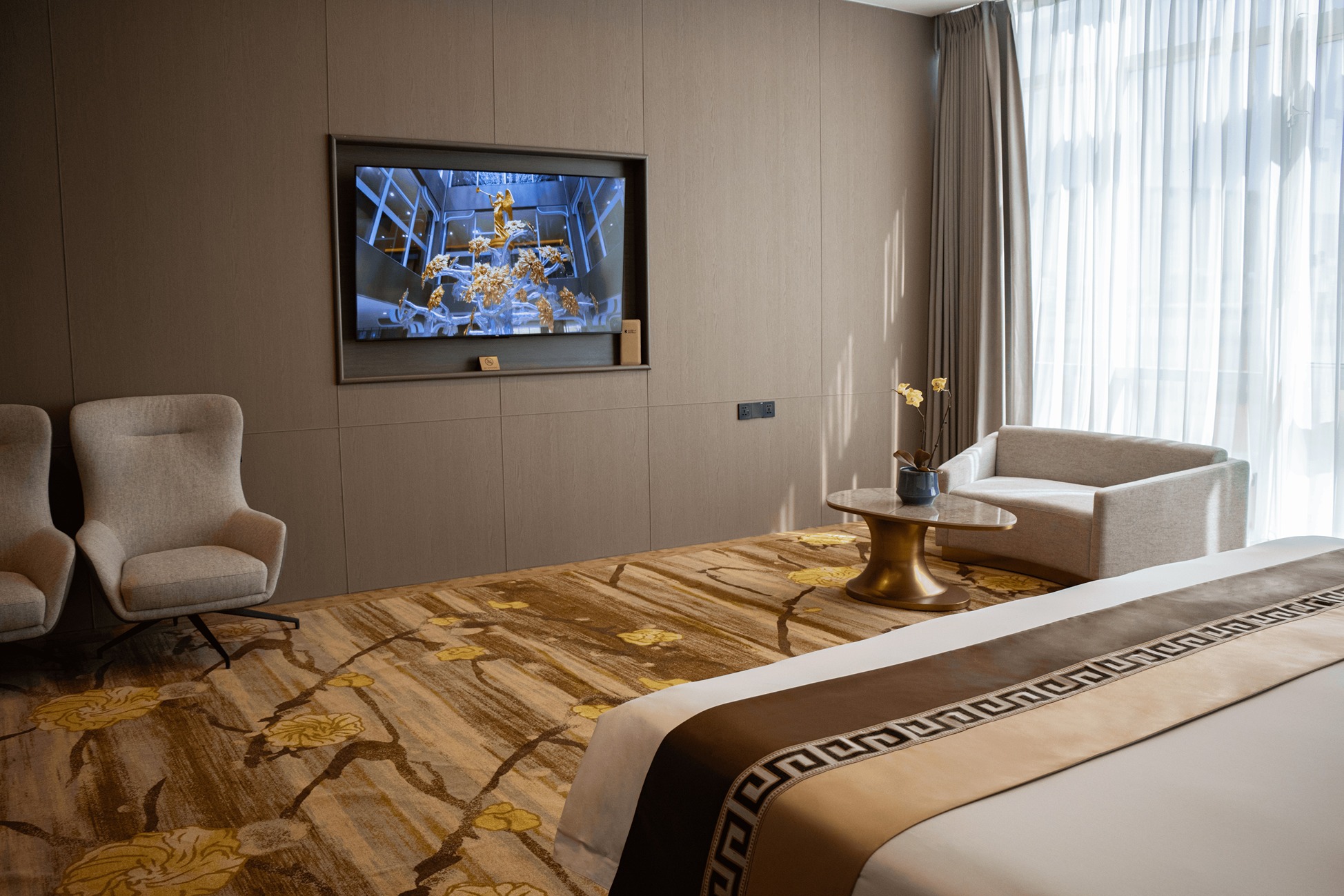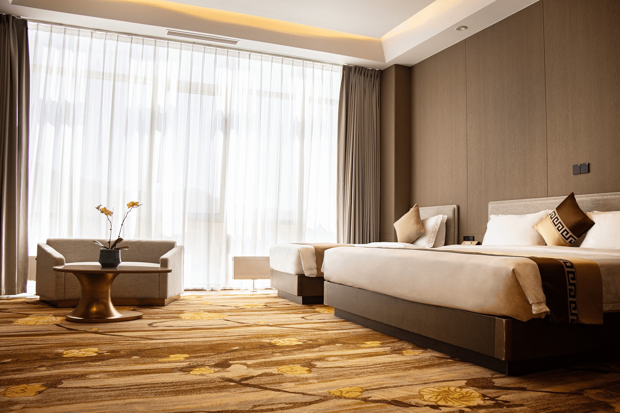 Thoughtfully styled with warm tones and subtle Mongolian design elements, the room offers a welcoming atmosphere where families can relax and reconnect. Enjoy a full range of modern amenities including high-speed Wi-Fi, a flat-screen TV, a spacious work desk, and a well-stocked minibar for your convenience.