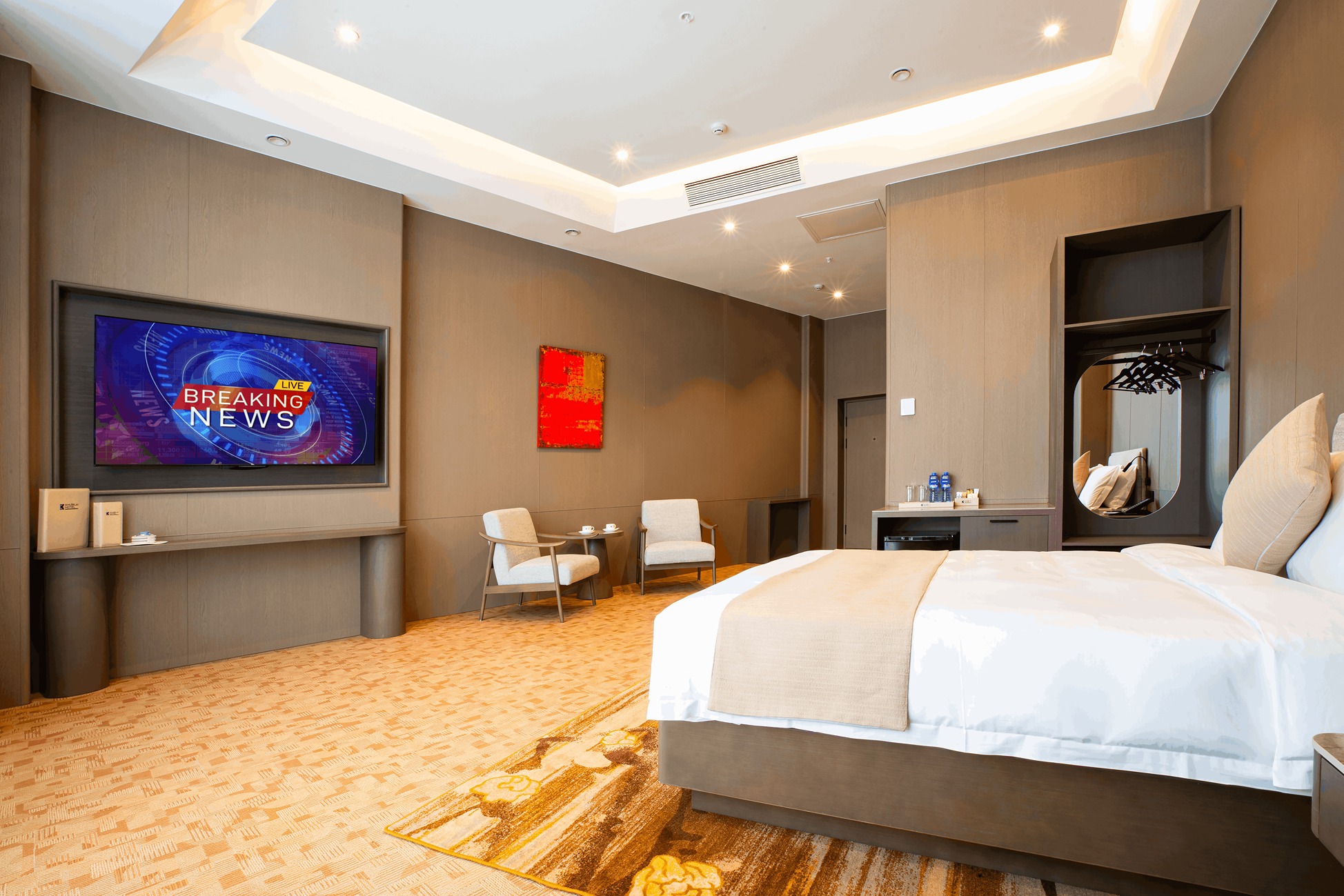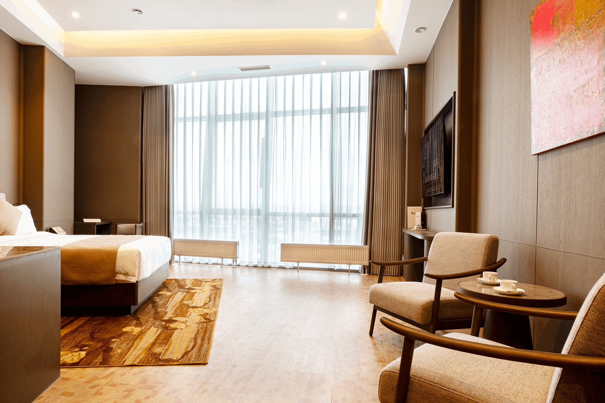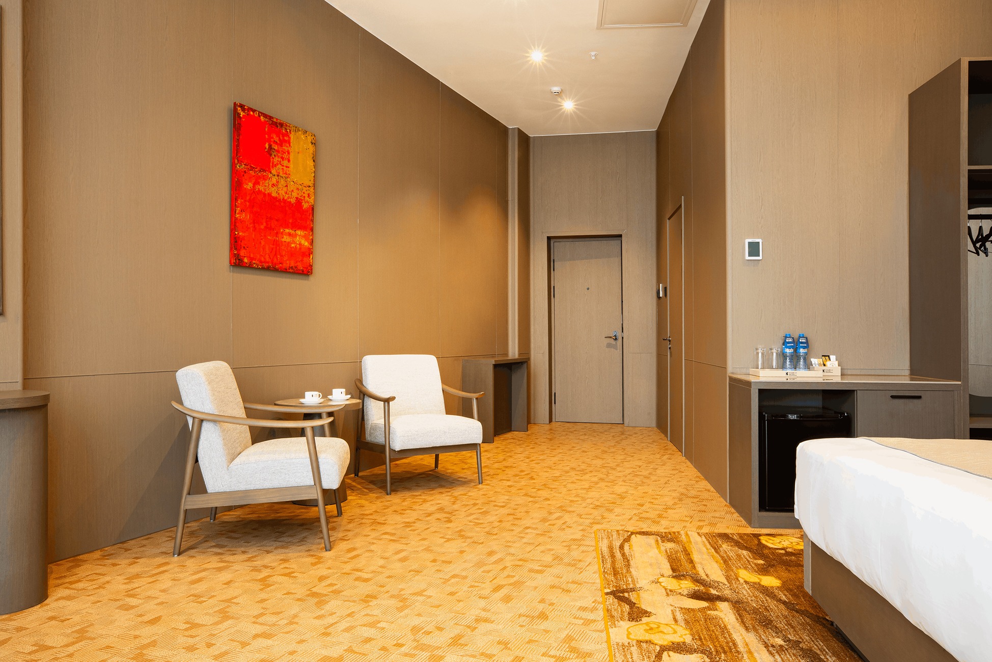 Whether you're visiting for business or leisure, the room offers all the modern comforts needed for a relaxing stay — including high-speed Wi-Fi, a flat-screen TV, a comfortable work desk, and a fully stocked minibar. Large windows fill the room with natural light, while blackout curtains ensure a restful night’s sleep. The sleek en-suite bathroom features a walk-in shower or bathtub (depending on availability), soft towels, bathrobes, and a selection of luxury toiletries for your convenience.